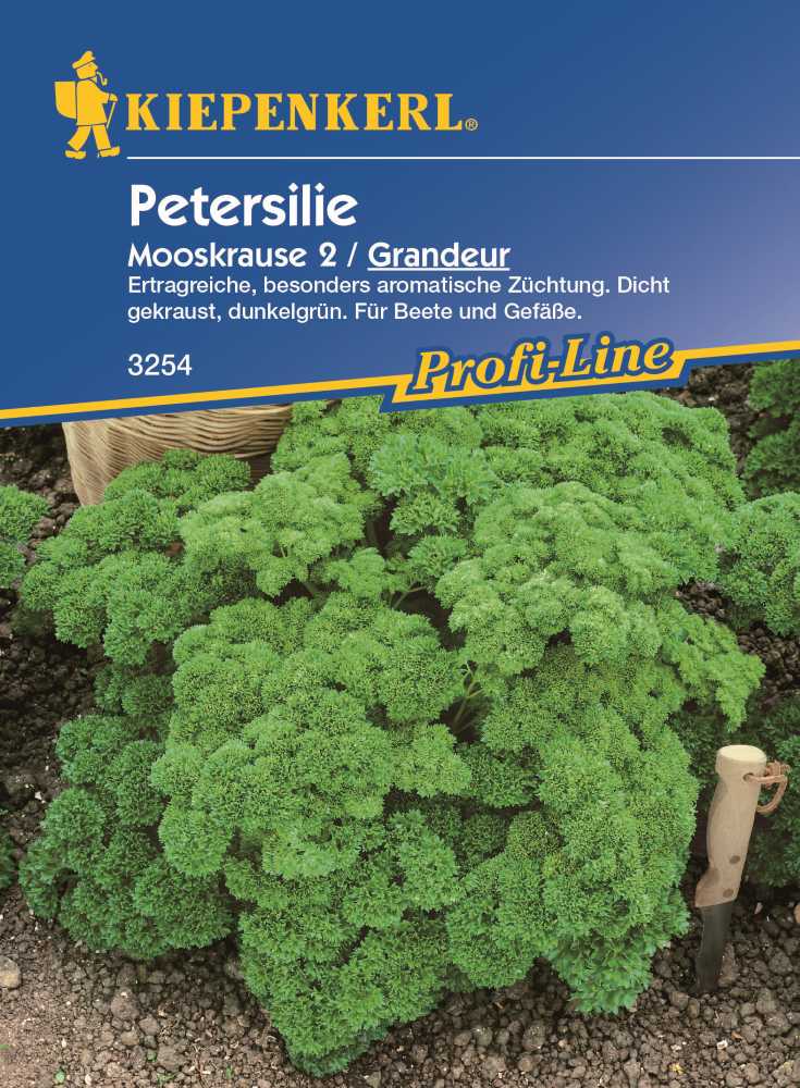 Die Petersilie 'Grandeur® (Moskrul 2)' aus dem Profi-Line-Sortiment von Kiepenkerl ist eine besonders aromatische Züchtung mit kräftigem Wuchs und guter Winterhärte. Die Pflanzen bringen viele dicht gefüllte, schwere Blattstiele hervor, die von April bis November geerntet werden können. Werden die Pflanzen für die Wintertreiberei im Haus ausgegraben und in Töpfe umgesetzt, sind auch 2 bis 3 Schnitte während der kalten Jahreszeit möglich.