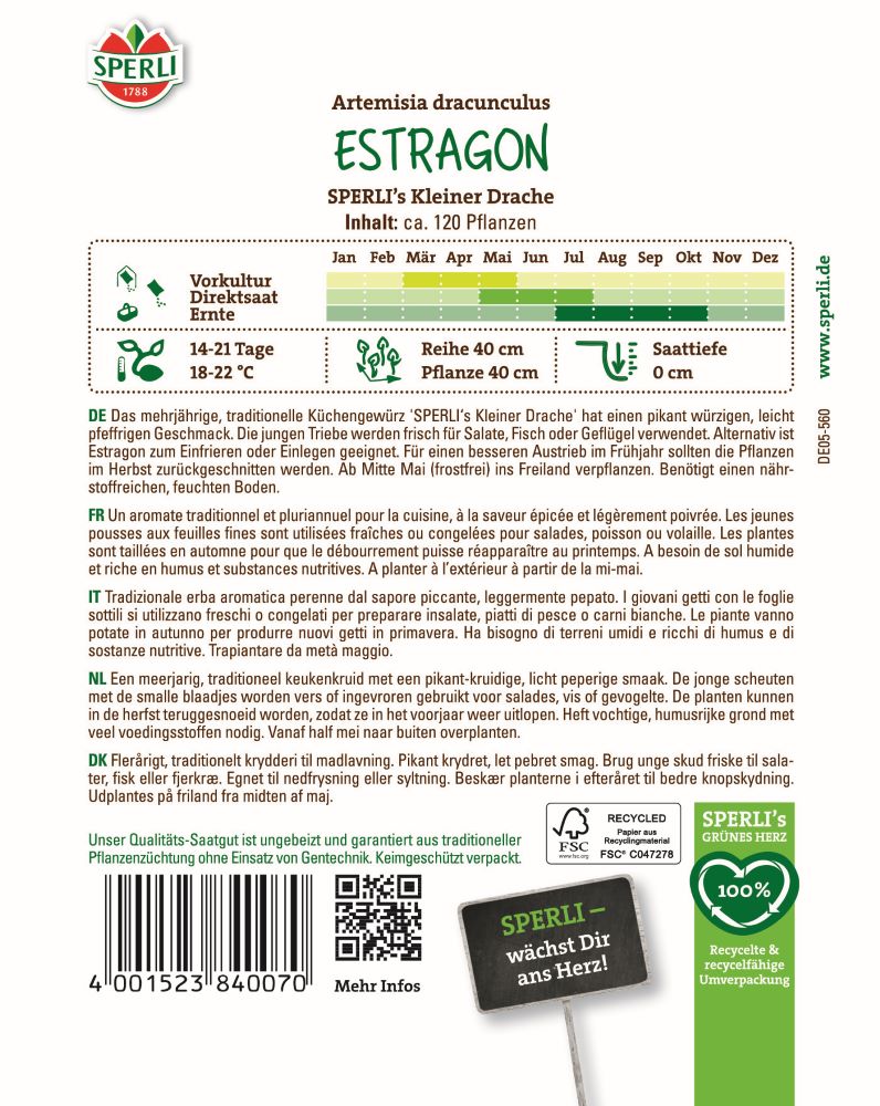 Herstellerinformation zu "Sperlis kleiner Drache, Estragonsamen"