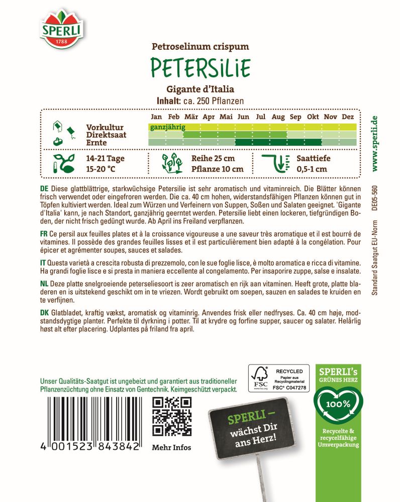 Herstellerinformation zu "Petersiliensamen Gigante d’Italia"