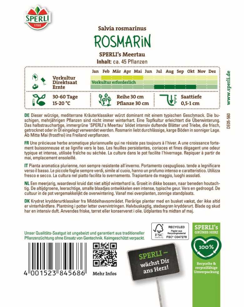 Herstellerinformation zu "Sperli Rosmarinsamen Meertau"