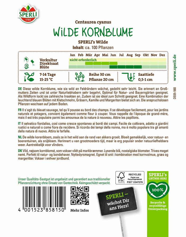 Herstellerinformation zu "Wilde Kornblume SPERLI's Wilde"