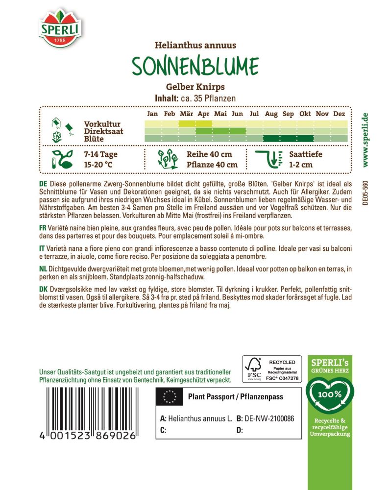 Herstellerinformation zu "Sonnenblume, gelber Knirbs, gefüllt"