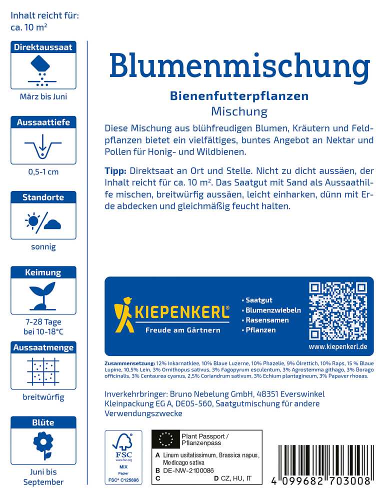 Herstellerinformation zu "Blumenmischung Bienenfutterpflanzen"