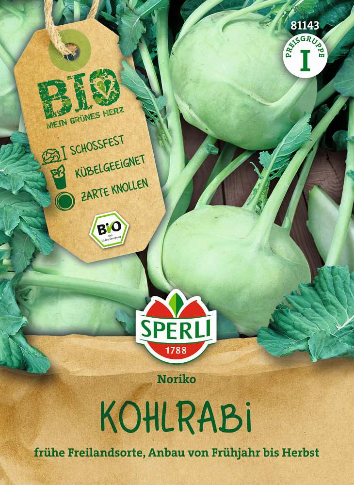 Der BIO-Kohlrabi Noriko ist eine frühe Freilandsorte, die viel Laub trägt und sich für den Anbau im Frühsommer, Sommer und Herbst eignet. Sie ist sehr robust und schossfest. Die großen Knollen bleiben zart, werden nicht holzig und haben einen hohen Strunk.