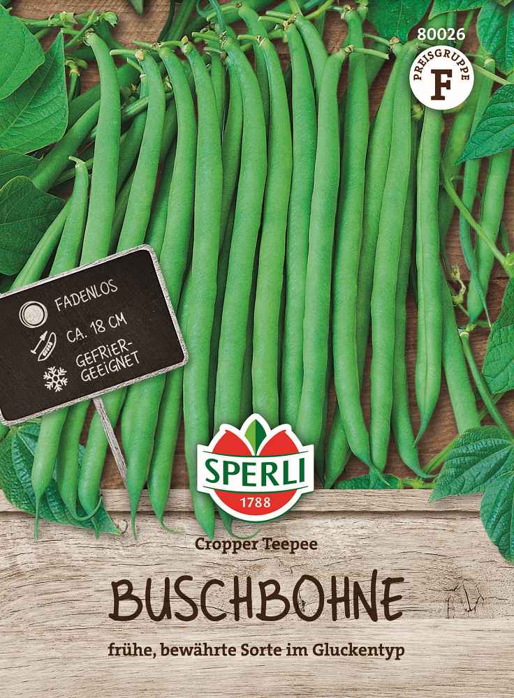 Bei der Buschbohne Cropper Teepee handelt es sich um fadenlose, sehr feine Sorte. Sie hat einen köstlichen Geschmack und eignet sich beispielsweise sehr gut zum Einkochen. Auch andere Gerichte schmecken mit Cropper Teepee hervorragend. Die runden, geraden Hülsen werden bis zu 18 cm lang und beinhalten weiße Körner. Da diese Bohnensorte zum sogenannten Gluckentyp zählt, ist die Ernte ganz einfach. Zudem kann Cropper Teepee eingefroren werden.