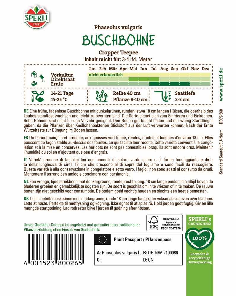 Herstellerinformation zu "Buschbohne Cropper Teepee"