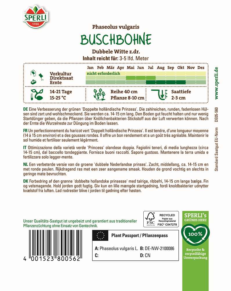 Herstellerinformation zu "Buschbohne Dubbele Witte z.dr."