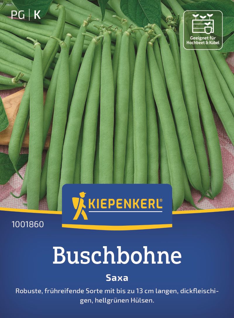 Die Buschbohne 'Saxa' ist eine robuste Gartensorte, die dickfleischige, fadenlose Hülsen von ca. 12 cm Länge hervorbringt. Ihre hellgrünen Bohnen zeichnen sich nicht nur durch ihren köstlichen Geschmack aus, sondern dienen auch zur Unterstützung eines gesunden Gartenbodens, da sie Stickstoff aus der Luft binden und somit die Fruchtfolge im Garten unterstützen. Diese wuchsfreudige Sorte erreicht eine Höhe von etwa 50 cm und gedeiht hervorragend im Hochbeet oder in großen Kübeln.