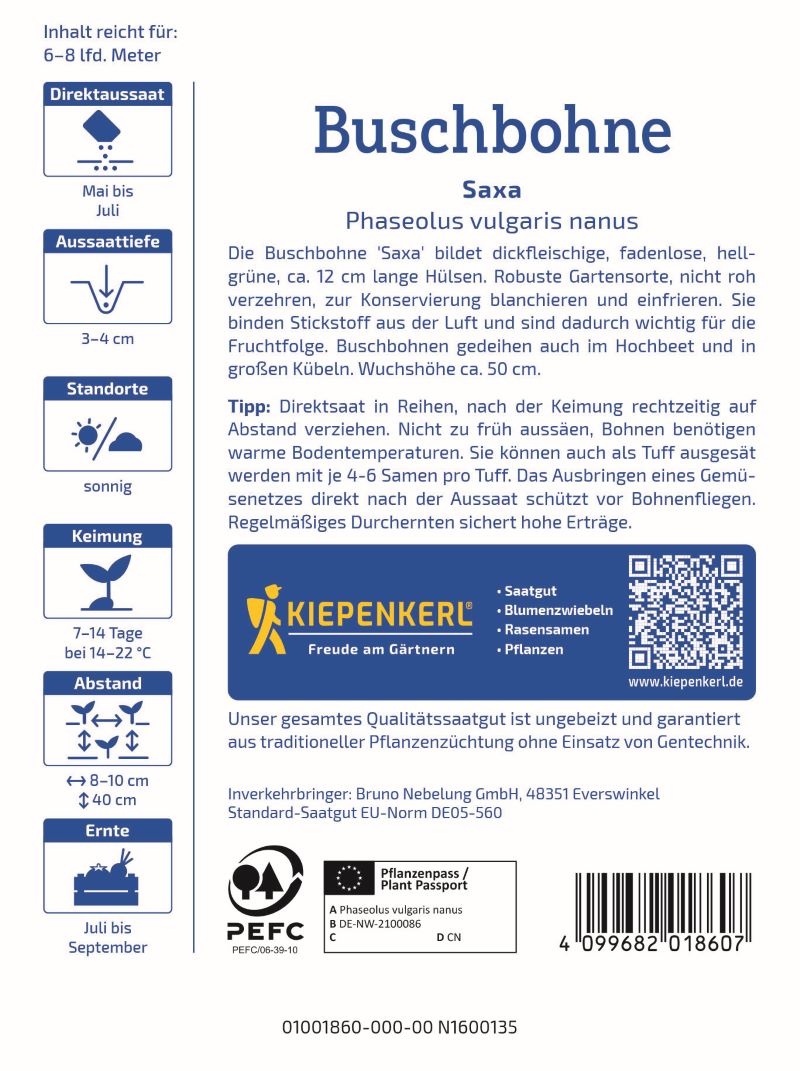 Herstellerinformation zu "Buschbohne Saxa"