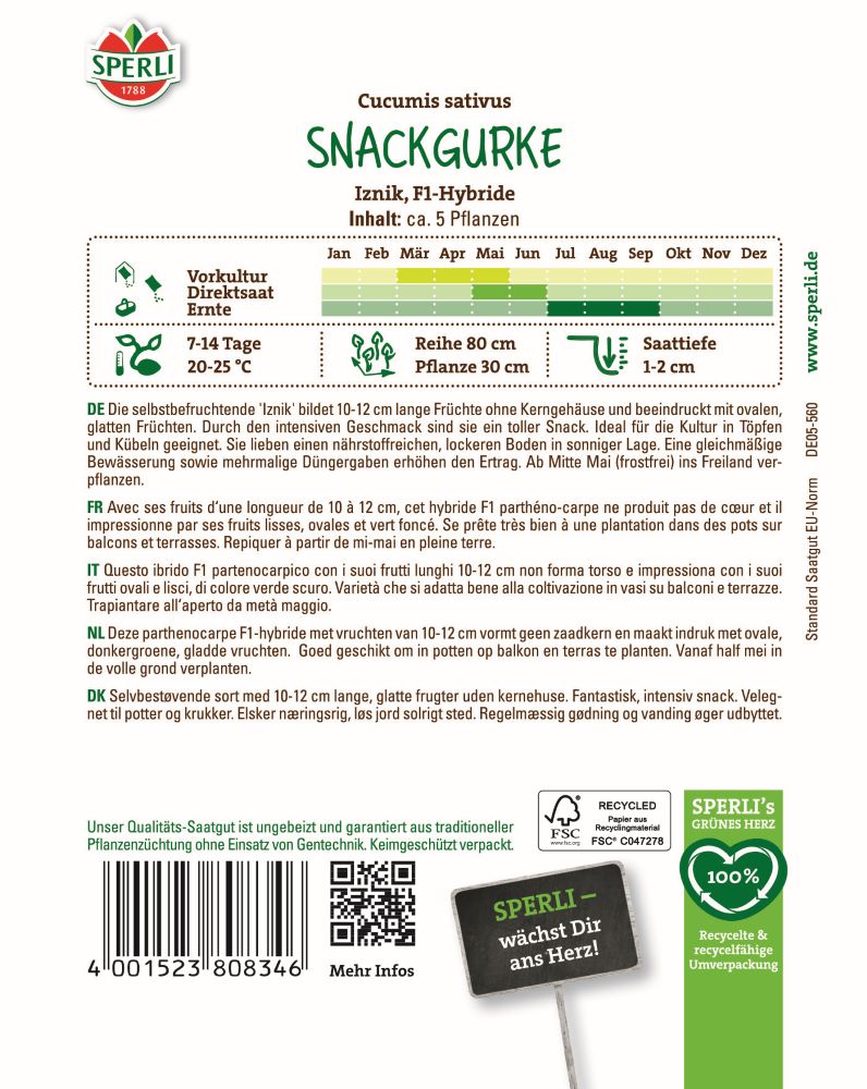 Herstellerinformation zu "Sperli Snackgurkensamen Iznik, F1"