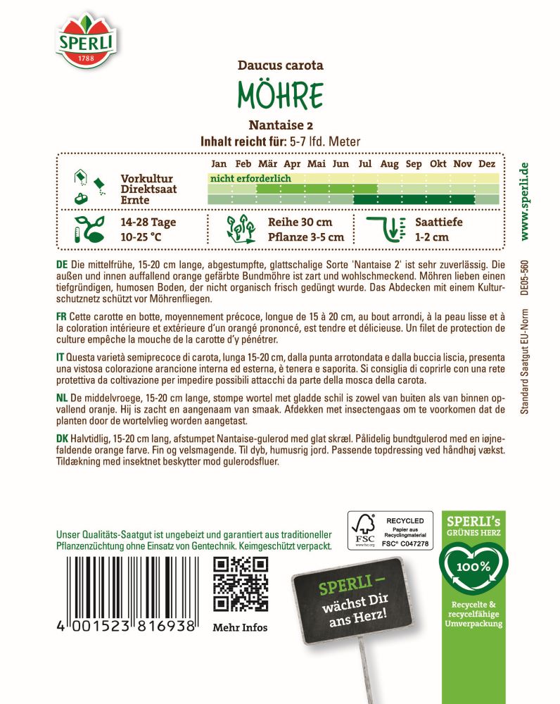 Herstellerinformation zu "Sperli Möhrensamen Nantaise 2"