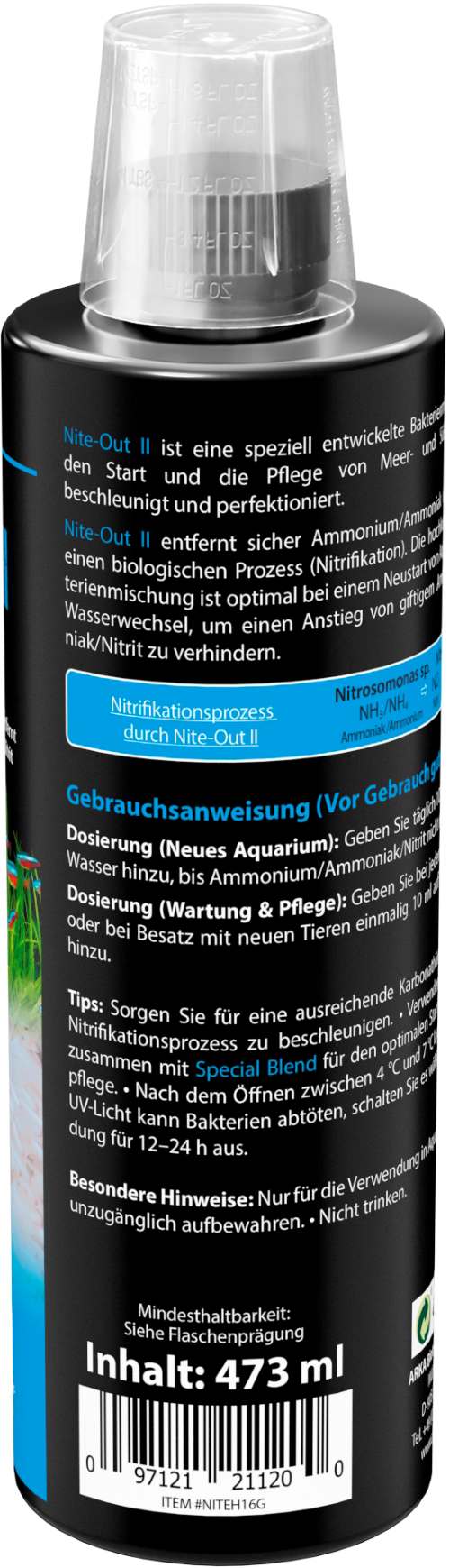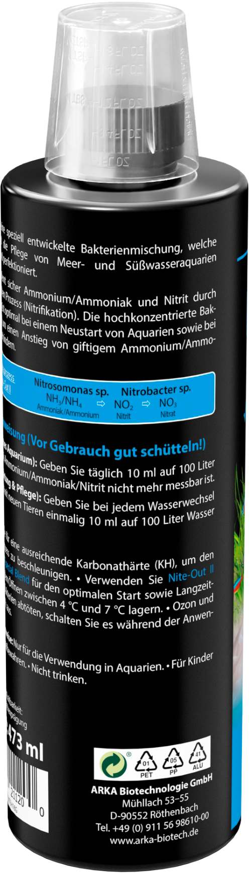 - Bakterienkulturen für natürliche, biochemische Verstoffwechselung: Nitrosomonas, Nitrospira und Nitrobacter