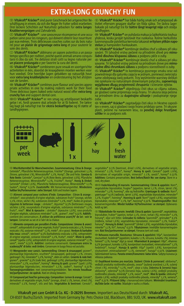 Herstellerinformation zu "Vitakraft Kräcker Trio-Mix Citrus / Gemüse / Honig"