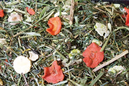 JR Grainless Herbs Meerschweinchen ist eine Alleinfuttermischung aus vielen langfaserigen Gräsern und Kräutern, die zusammen mit viel Gemüse und Blüten die optimale Ernährungsgrundlage für ein gesundes Tierleben bilden. Mit dem Plus an natürlichem Vitamin C aus der Petersilie. Zusammensetzung: Aufwuchs von Dauergrünland der Alpenvorlandwiesen (bestehend unter anderem aus Wiesen- Lieschgras [Timothy-Gras], Fuchsschwanz, Glatthafer, Knaulgras, Flaumhafer, Wiesenrispe, Rotklee, Scharfer Hahnenfuß, Ruchgras, Wolliges Honiggras, Goldhafer, Schmalblättrige Wicke, Hopfen- Schneckenklee, Löwenzahn, Spitzwegerich, Wiesen-Schlüsselblume, Margerite, Gänseblümchen, Große Bibernelle, Wiesenlabkraut, Pastinake, Sauerampfer, Gamander-Ehrenpreis, Gewöhnliches Hornkraut, Deutsches Weidelgras, Weiche Trespe, Vogelwicke, Zaunwicke, Dreizähniges Knabenkraut, Knolliger Hahnenfuß, Kleiner Klappertopf, Wiesenkerbel, Schafgarbe), Erbsenflocken, Karotten, Ackerbohnenflocken, Petersilie 5%, Leinsaat, Pastinaken, Pfefferminze, Spitzwegerich, Ringelblumenblüten, Rote Beete, Fenchelsaat, Haselnusshölzer, Brennnesselwurzeln, Melisse, Birkenblätter, Himbeerblätter, Löwenzahn, Schwarzkümmel, Kamillenblüten, Gurke, Zucchini