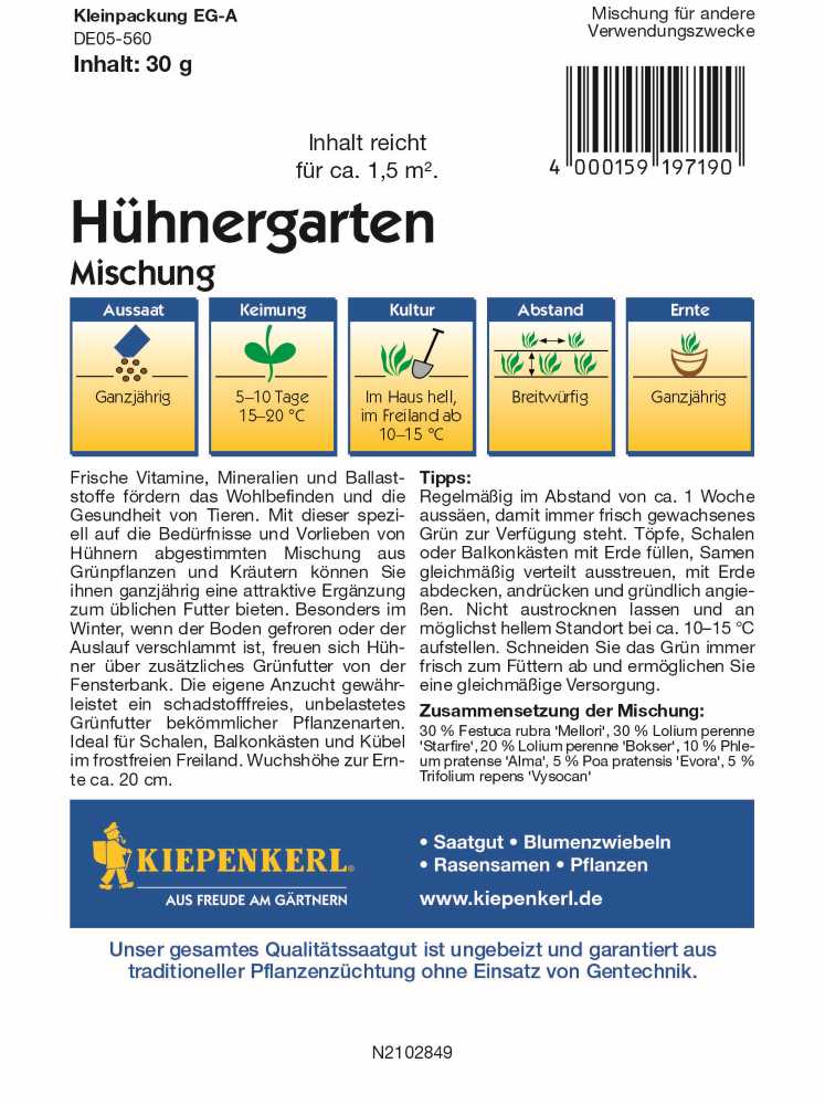 Herstellerinformation zu "Kiepenkerl, Hühnergarten-Samen"