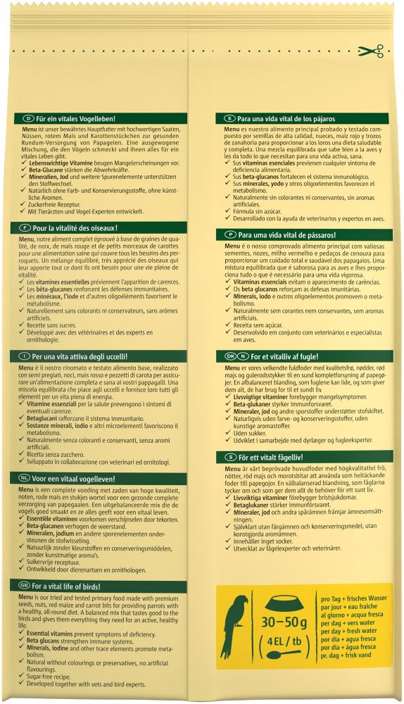 Herstellerinformation zu "Vitakraft Premium Menü für Papageien 1kg"