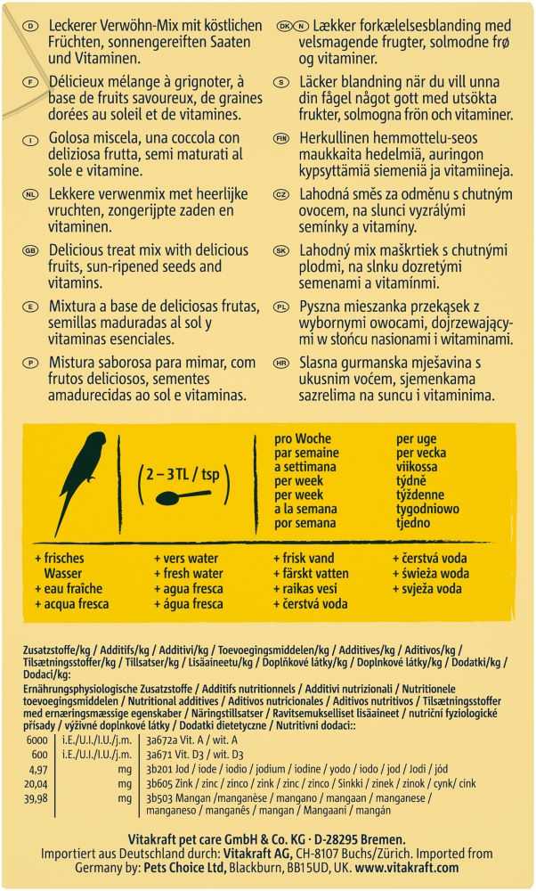Herstellerinformation zu "Vitakraft Fruit Cocktail für Sittiche, 200 g"