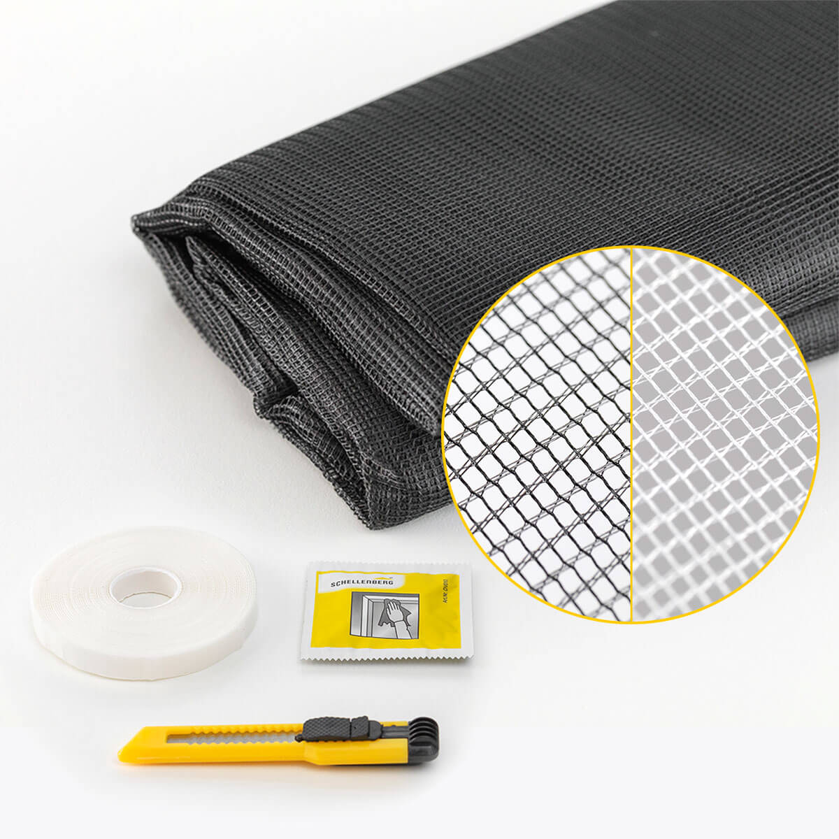 inklusive Befestigungsband, Cuttermesser und Reinigungstuch schnelle und einfache Montage, ohne bohren UV-beständiges Insektenschutzgewebe individuelle Größenanpassung möglich bei Verschmutzung waschbar bei 30 °C