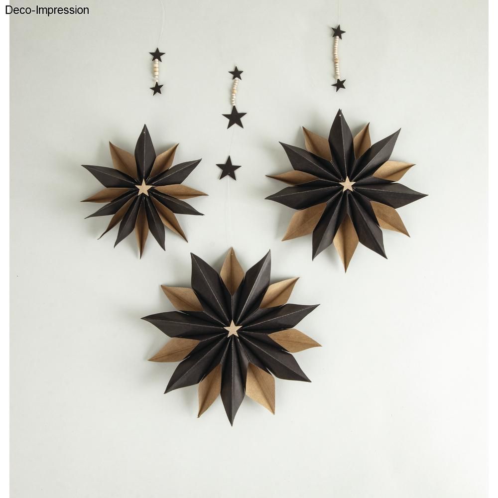 Moderne schwarze Weihnachts-Dekorationen sind Trend! Zauberhafte 3D-Sterne aus schwarzen Papier-Tüten, mit Rohholzkugeln veredelt. Perfekt als Geschenkanhänger, Fensterschmuck oder für den Christbaum. Inhalt: